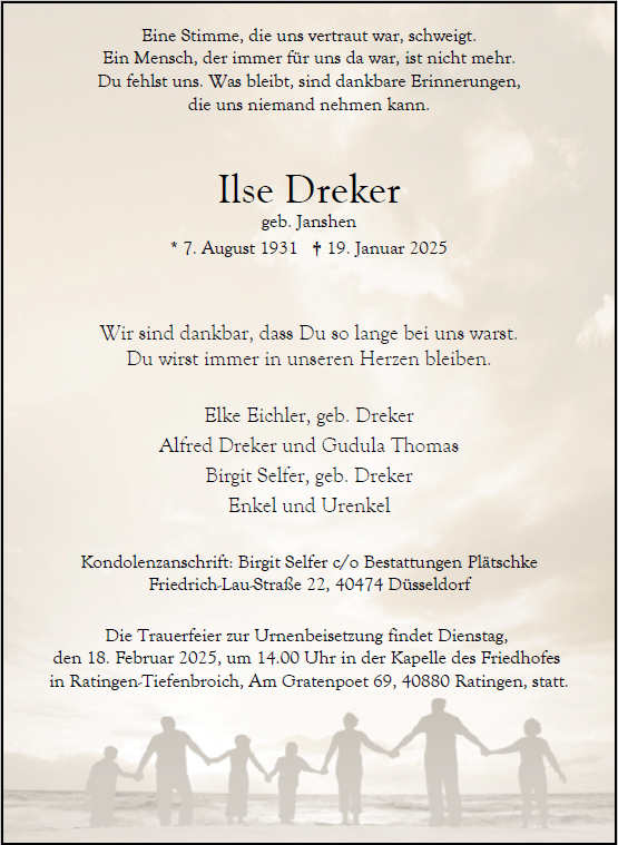 Ilse Drekergestorben am 19. Januar 2025